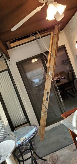 Built for safety this sturdy wood ladder makes it easy to access your attic with nine non slip steps and a convenient handrail for support while climbing.